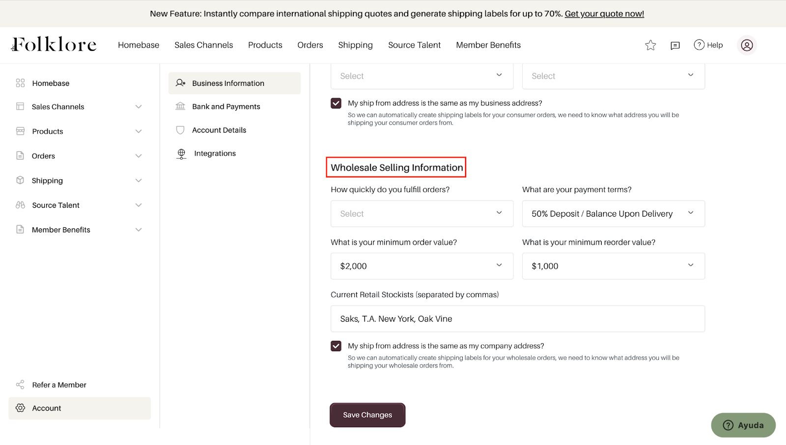 - So we can automatically create shipping labels for your wholesale orders, we need to know what address you will be shipping your wholesale orders from.