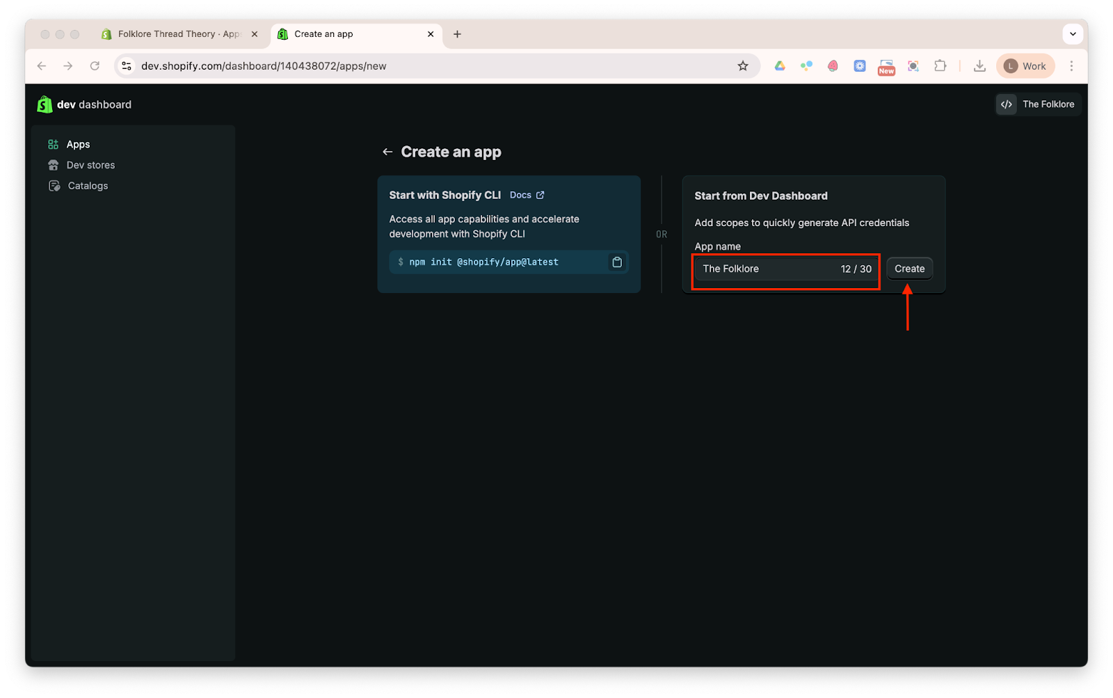 - Name the new app “The Folklore” and click Create app.