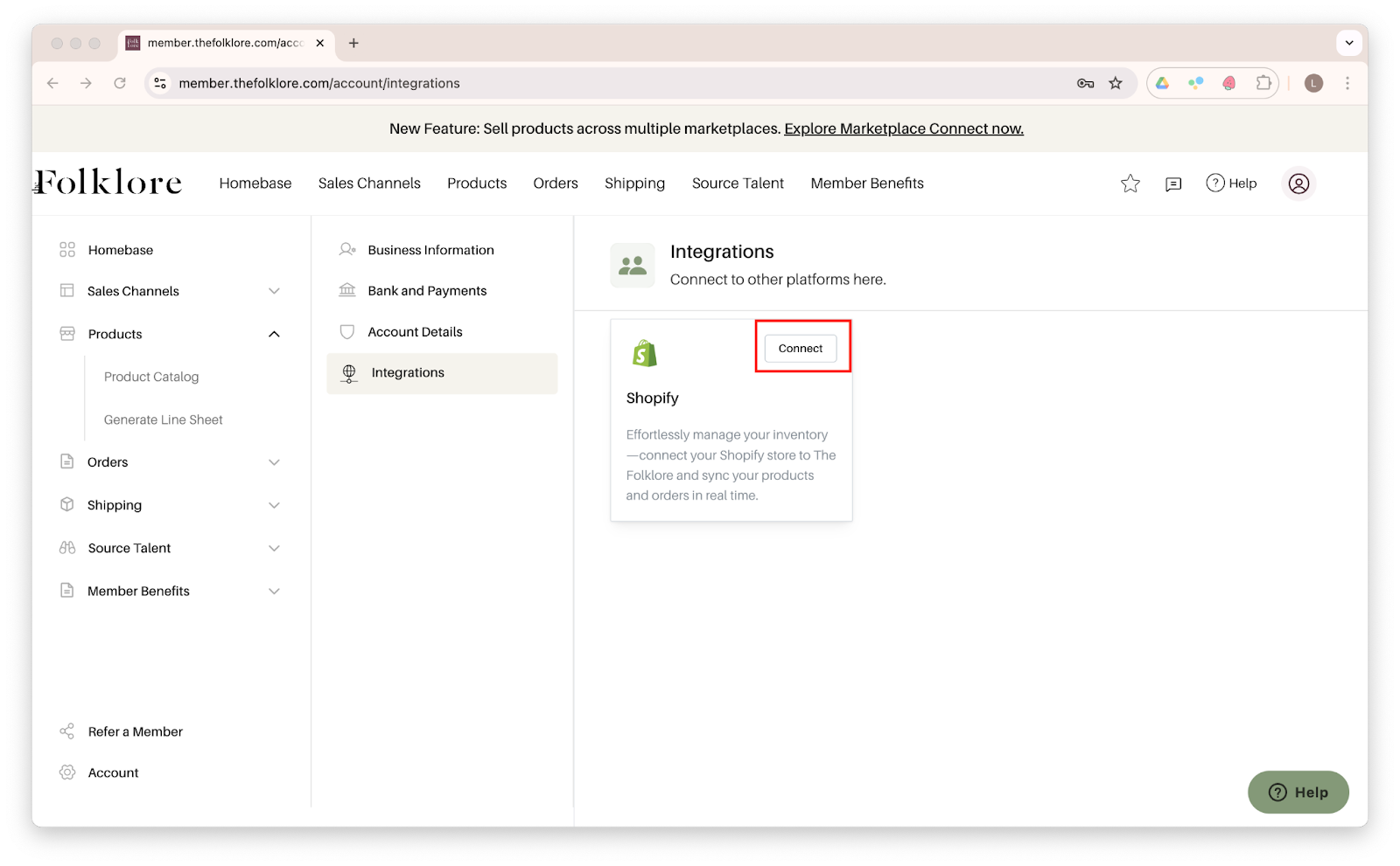 - In the lower sidebar menu, go to Account Settings > Integrations or click this link: https://member.thefolklore.com/account/integrations