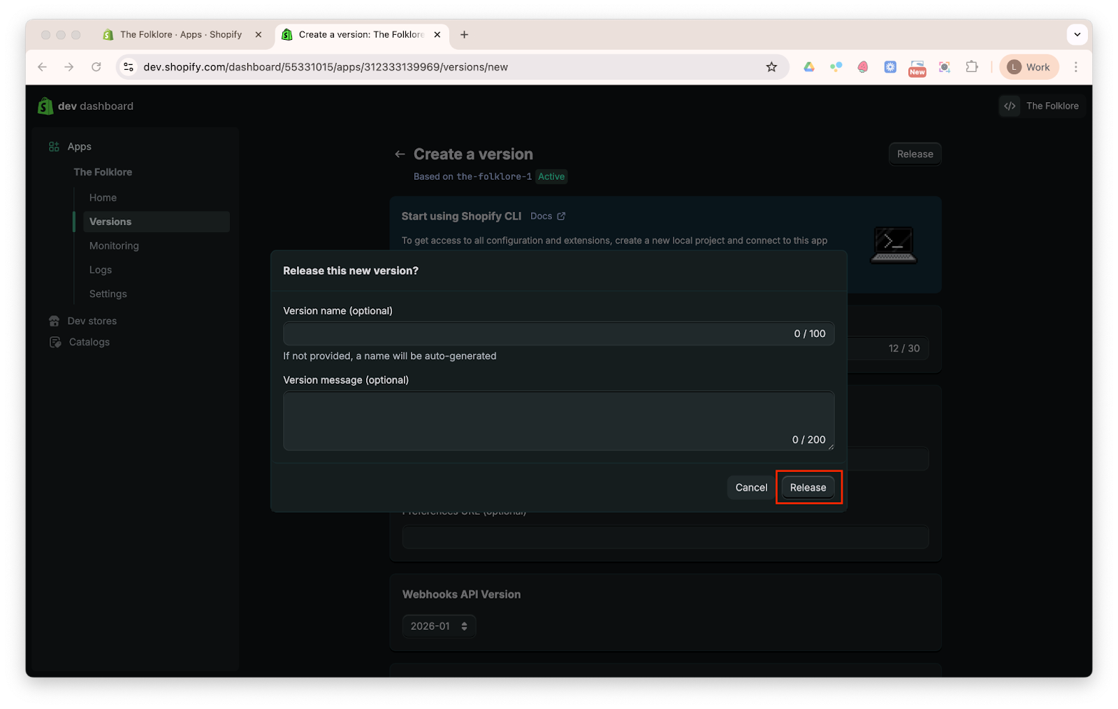 - Scroll back to the top of the page and click Release. When the confirmation popup appears, click Release again.