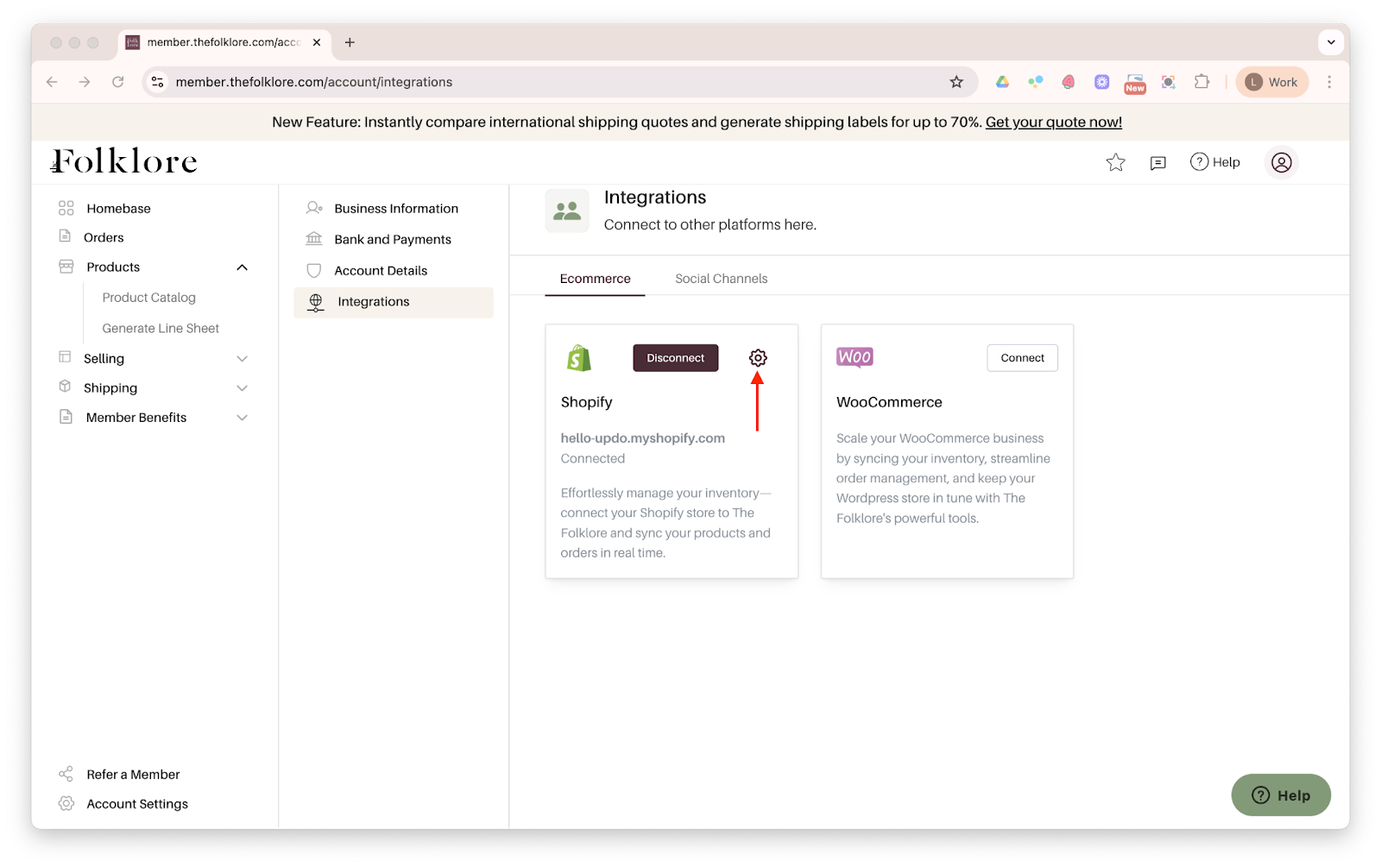 Or visit this link directly: https://member.thefolklore.com/account/integrations.